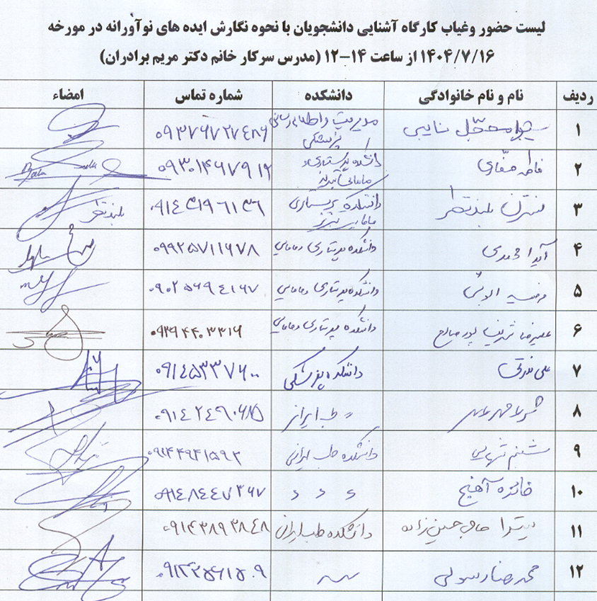 برگزاری کارگاه آشنایی با ایده های نوآورانه در مورخه 16/7/1404 توسط خانم دکتر مریم برادران بی نظیر